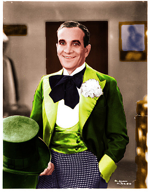 One of my favorites – Al Jolson. Here is an original photo taken during his 1930 film, MAMMY. The black and white photography is not especially artistic: