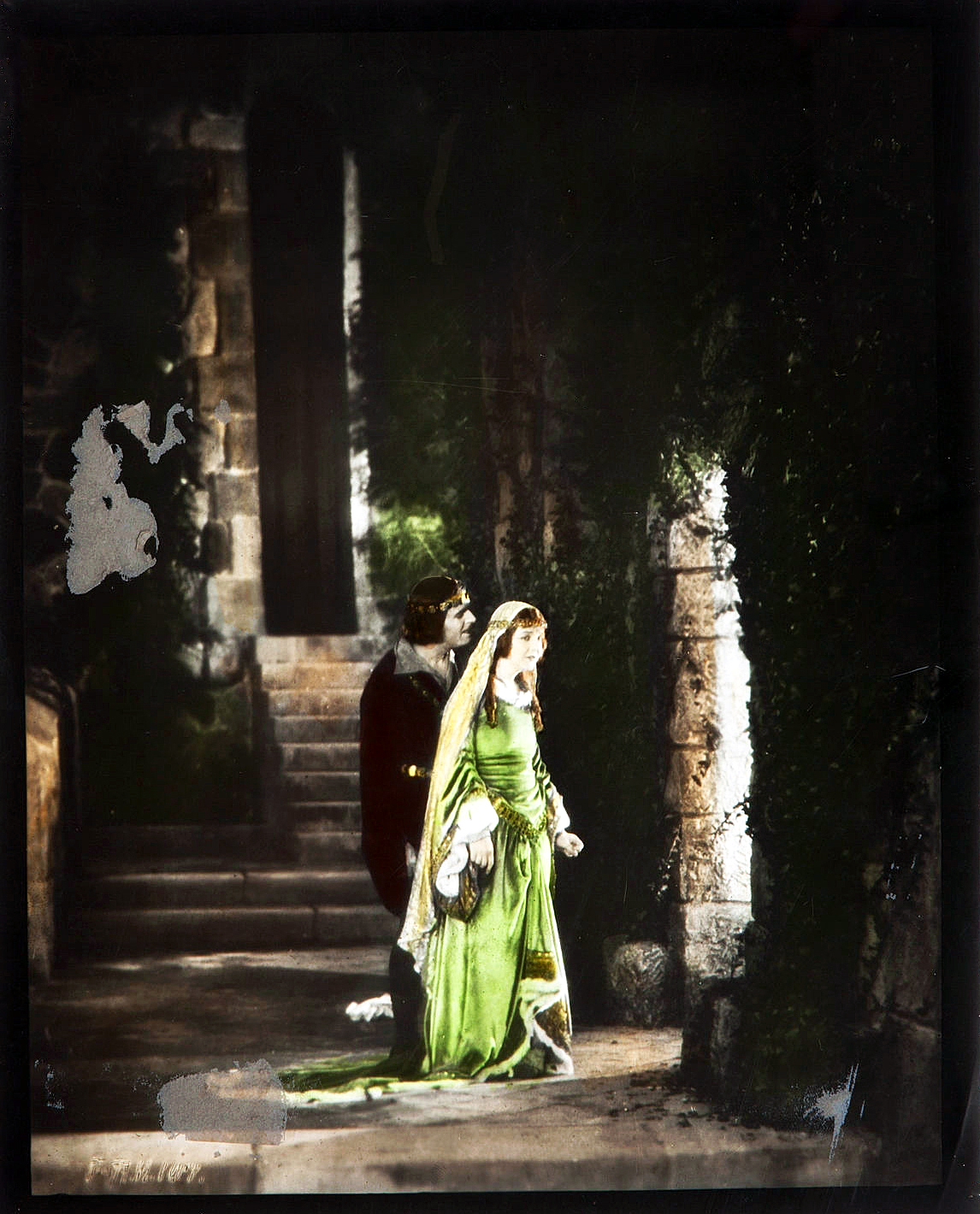 Robin Hood with Maid Marian, played by Enid Bennett – another German color transparency: