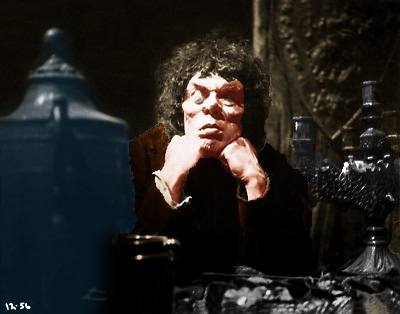 Lon’s Asian characterizations are remarkable. This portrait, scanned directly from a negative, is from OUTSIDE THE LAW (1923), a film that not only survives but is available on dvd. This photo is striking in black & white but if color film were available, the photographer might have attempted a lantern-light effect such as this: