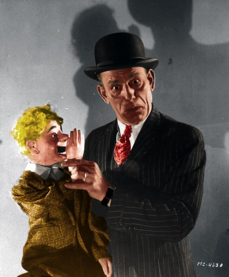Lon Chaney made only one talkie, the very successful THE UNHOLY THREE (1930), which was a remake of his 1925 hit. Filmed during April 1930, the Man of a Thousand Faces spoke in five different voices, including as an old lady, a parrot, and a ventriloquist’s dummy pictured here in what turned out to be Lon’s final photo session: