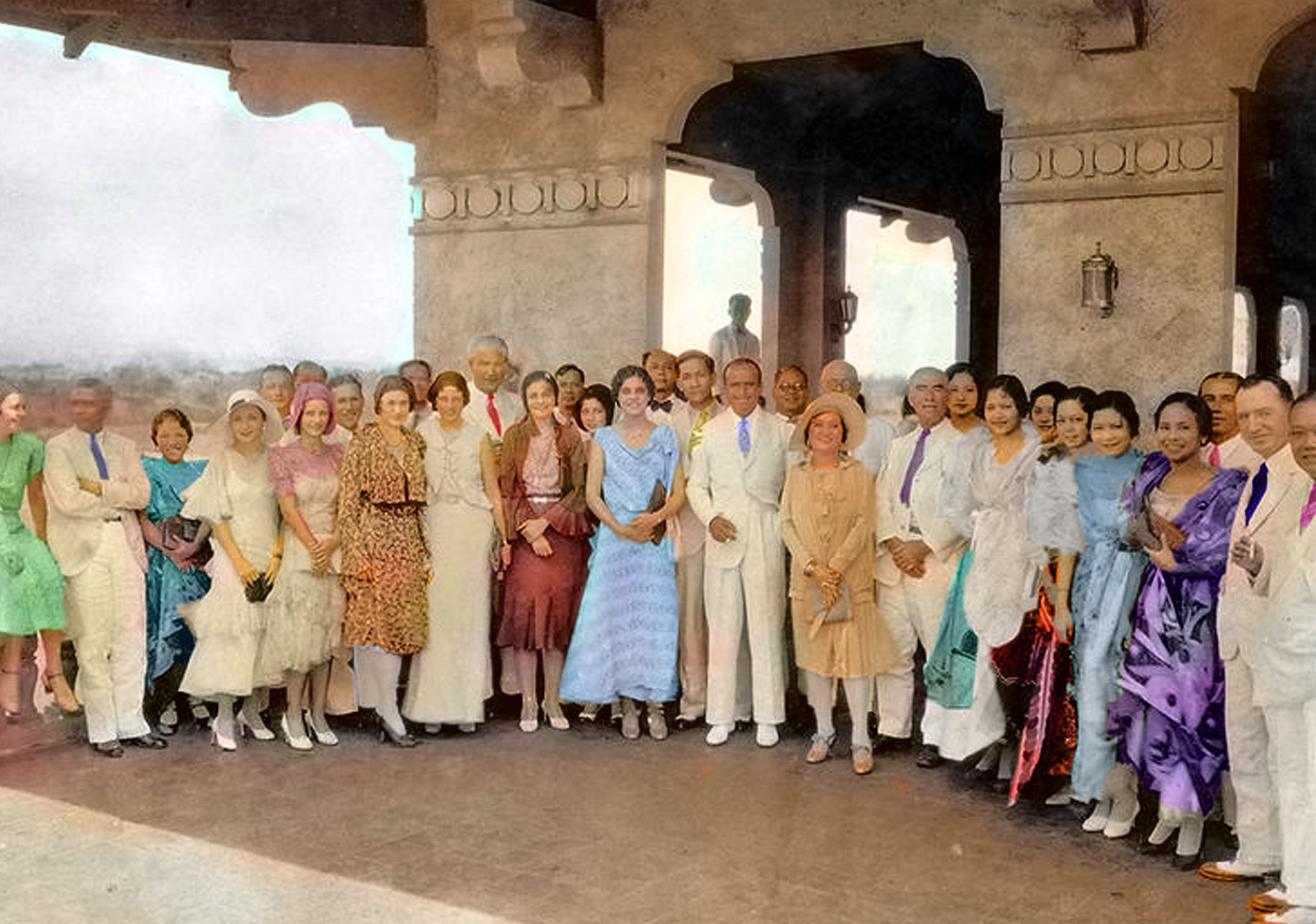 Douglas Fairbanks Sr. is the center of attention at the Hotel Manila in the Philippines during the filming of AROUND THE WORLD IN EIGHTY MINUTES (1931):