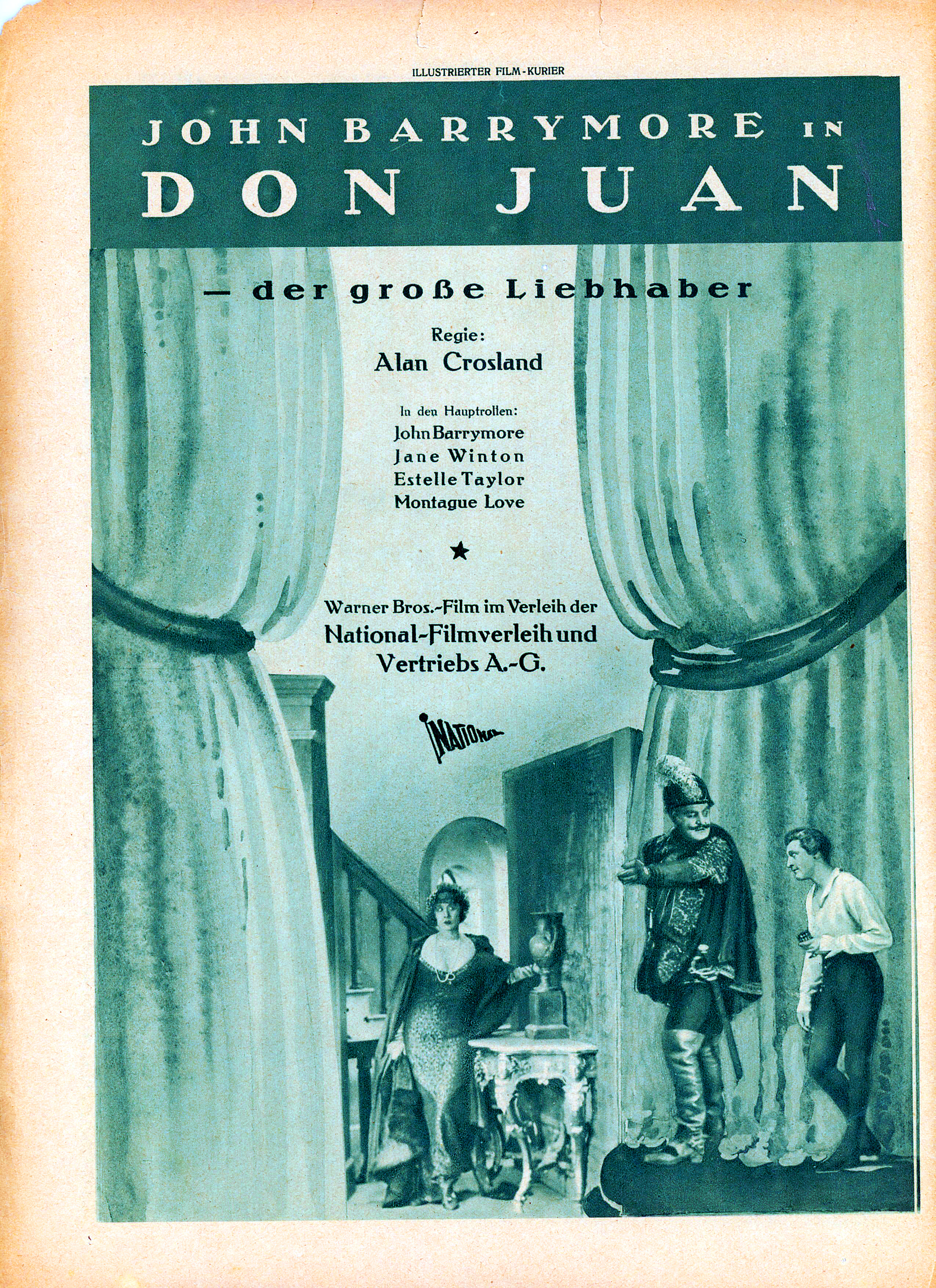 In Germany, this film was known as Don Juan – Der große Liebhaber, and here is the complete German souvenir program as restored by your blogmeister (from a bile green back to cool blue):