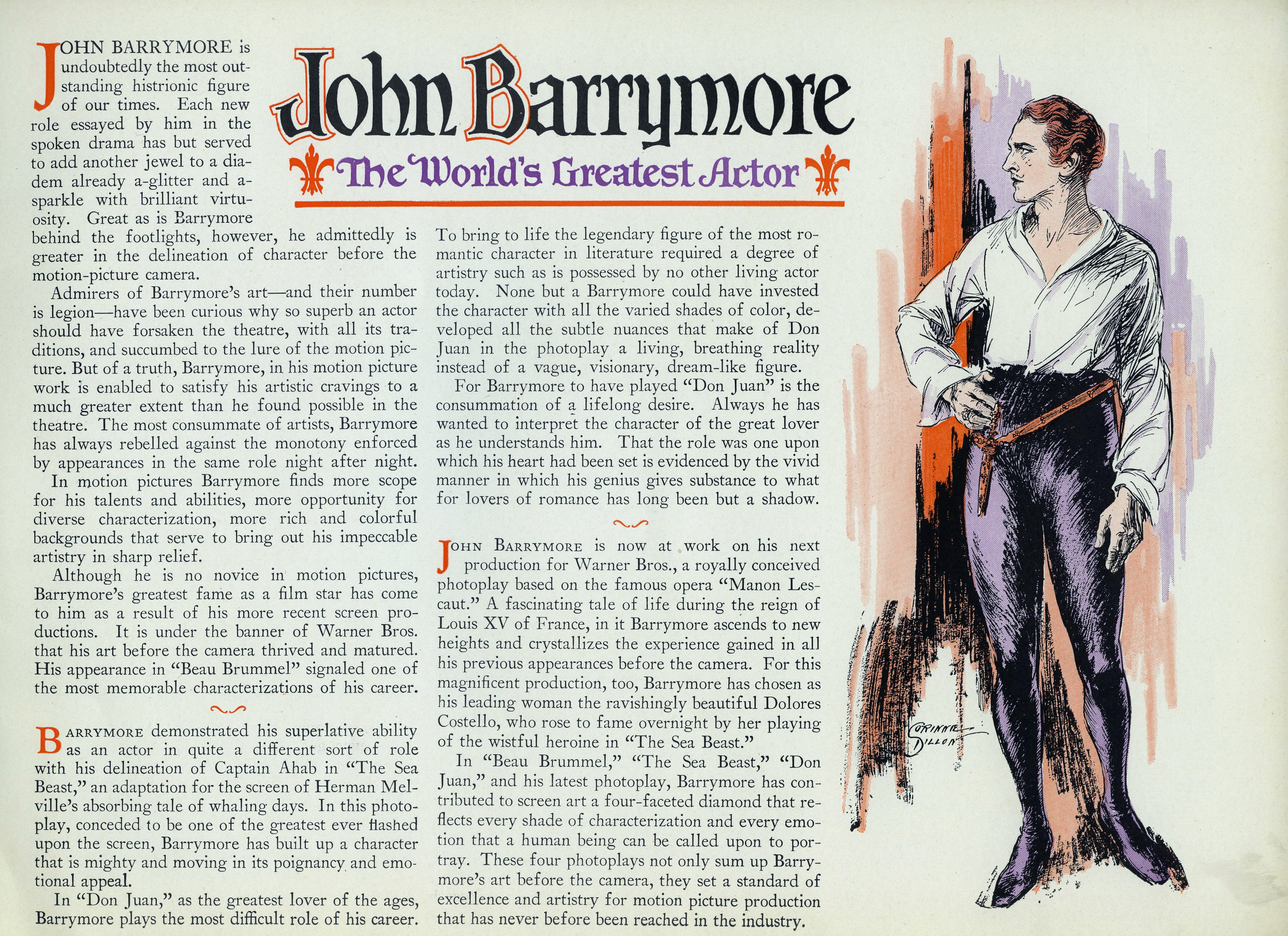 This large 8.5×11 inch volume displays rare posters, photos, programs, and even paintings by Barrymore himself, in full color:
